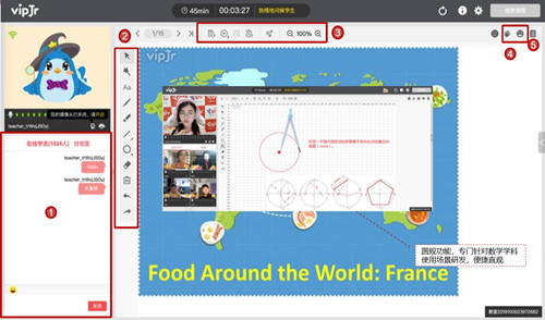 同时,麦奇云还搭载多样化的互动工具,用科技让在线课堂获得更佳的效果。其中,互动式电子白板可支持多人同步涂鸦;教学工具则包含各种各样的画笔、形状工具,满足不同学科的教学需要。此外,麦奇云还拥有答题器、在线翻译、文字互动、表情包等功能,力求让在线课堂拥有超越线下课堂的实时交互体验。