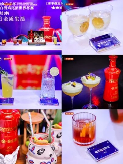本届中国白酒鸡尾酒世界杯赛选手通过层层选拔,角逐出来自全国28个地区、共计50家酒吧专业调酒师入围参赛。选手们以金剑南K6为开端,“开启金质生活”为灵感源泉,通过酒品品质、酒品销量及传播广度三大评选维度进行综合评选,深入挖掘中国文化主题及创意元素,巧妙融合本土特色食材与文化特色,创作出了多款蕴含深厚中国文化底蕴的白酒鸡尾酒佳作。