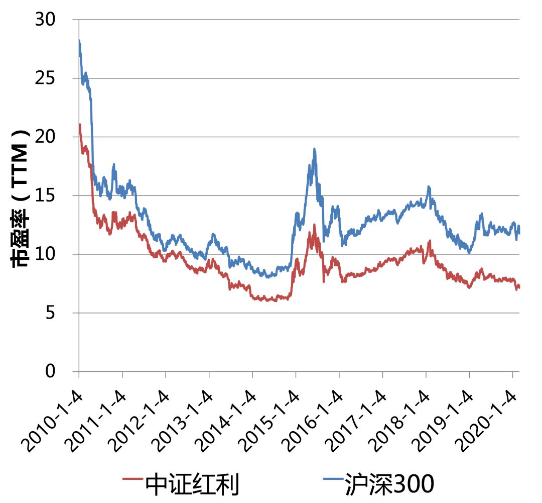 中证红利与沪深300市盈率对比图