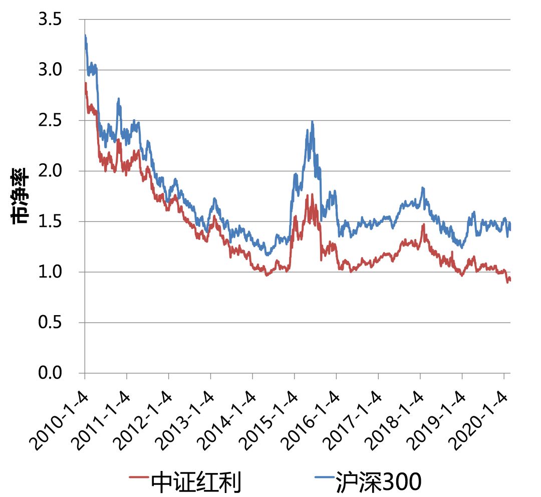 中证红利与沪深300市净率对比图