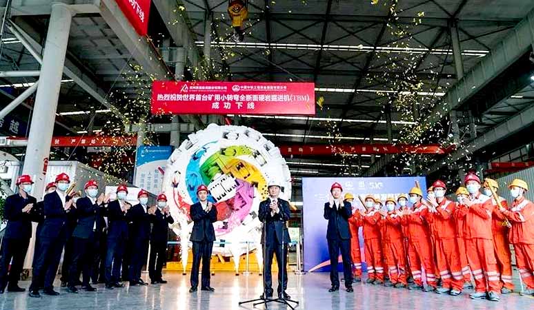中国中铁自主研制的世界首台矿用小转弯全断面硬岩掘进机(TBM)在中国中铁装备集团盾构总装车间下线仪式,中国中铁践行“三个转变” “中国品牌日” 主题品牌六年成果展。