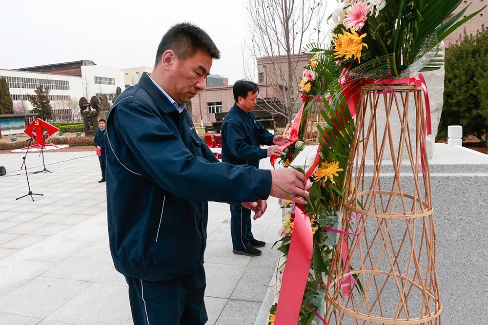 林军科在仪式上讲话。他指出:从127年前的山海关造桥厂到今天的中铁山桥集团,历代山桥人始终坚守着百折不挠、自强不息的奋斗精神,坚定着工业报国、尽善尽美的初心使命,铸就了“百年老店”的历史辉煌,为国家的交通事业书写了浓墨重彩的篇章。99年前,中国共产党创始人之一王尽美来到山桥创建了党组织,党从此在山桥人心中深深扎根,跟党走也成为了山桥人永不动摇的信念。今天,我们重温入党誓词,向王尽美敬献花篮,是为了坚定理想信念,牢记初心使命,回顾历史再向前,尽善尽美再出发。