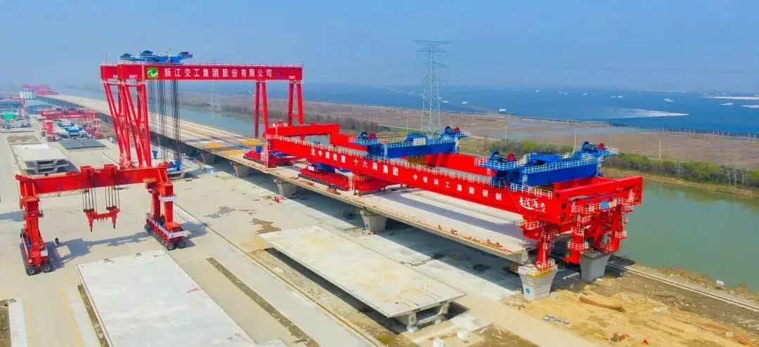 “越海号”是我国自主研发制造的目前世界最大整孔预制箱梁架桥机。它能适应不同跨径、小曲线半径、左右幅高低墩等多种特殊工况,还可以利用无级偏心可调吊具实现转体梁的架设,满足了项目施工中面临的超高段桥面渐变横坡的技术要求。截至目前,“越海号”已取得3项发明专利,另有两项发明专利正在申请。