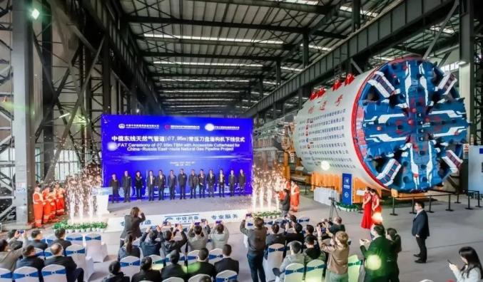 “畅通号”盾构机,开挖直径7.95米,整机长度约146米,整台盾构机由主机、连接桥和11节拖车组成。其所服务的项目,是目前世界油气管道领域单次掘进距离最长、埋深最深、水压最高、口径最大的管道穿江盾构工程。盾构机将在长江下独头掘进10.226公里,在目前全球在建隧道中排名第一,同时水下掘进7500米,更是目前在建的长江水下最长隧道。